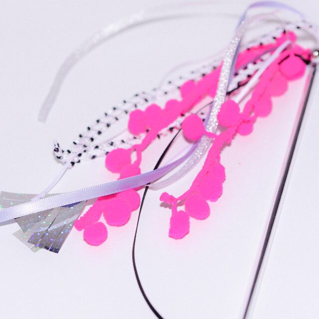 カラフルなリボンやコードでできた、おしゃれな猫じゃらし。